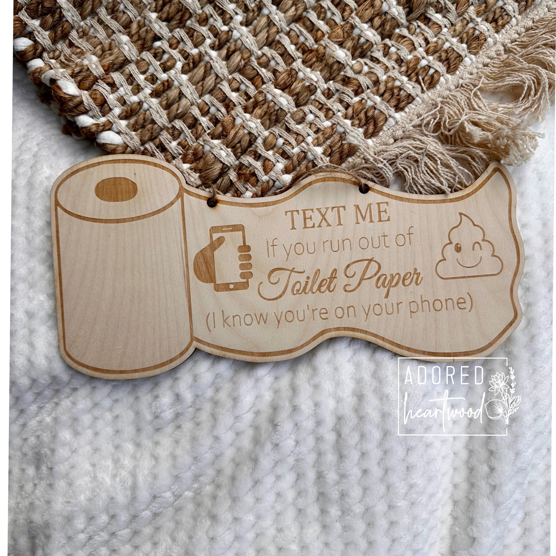 Add some humor to your bathroom with this laser-engraved wooden sign that’s sure to get a chuckle (or at least a smirk). Made from high-quality 1/8" Baltic Birch plywood, it's lightweight and easy to hang.